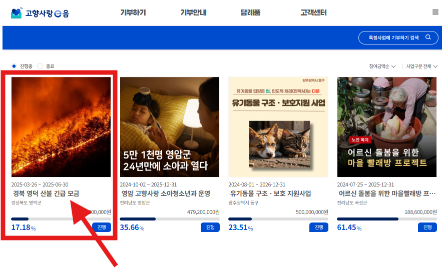 2. 특정사업에 기부하기 클릭